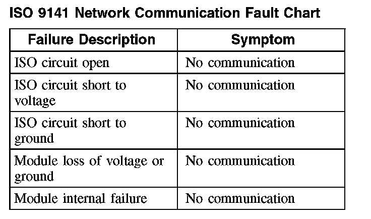 ISO 9141 Network Communication Fault Chart: