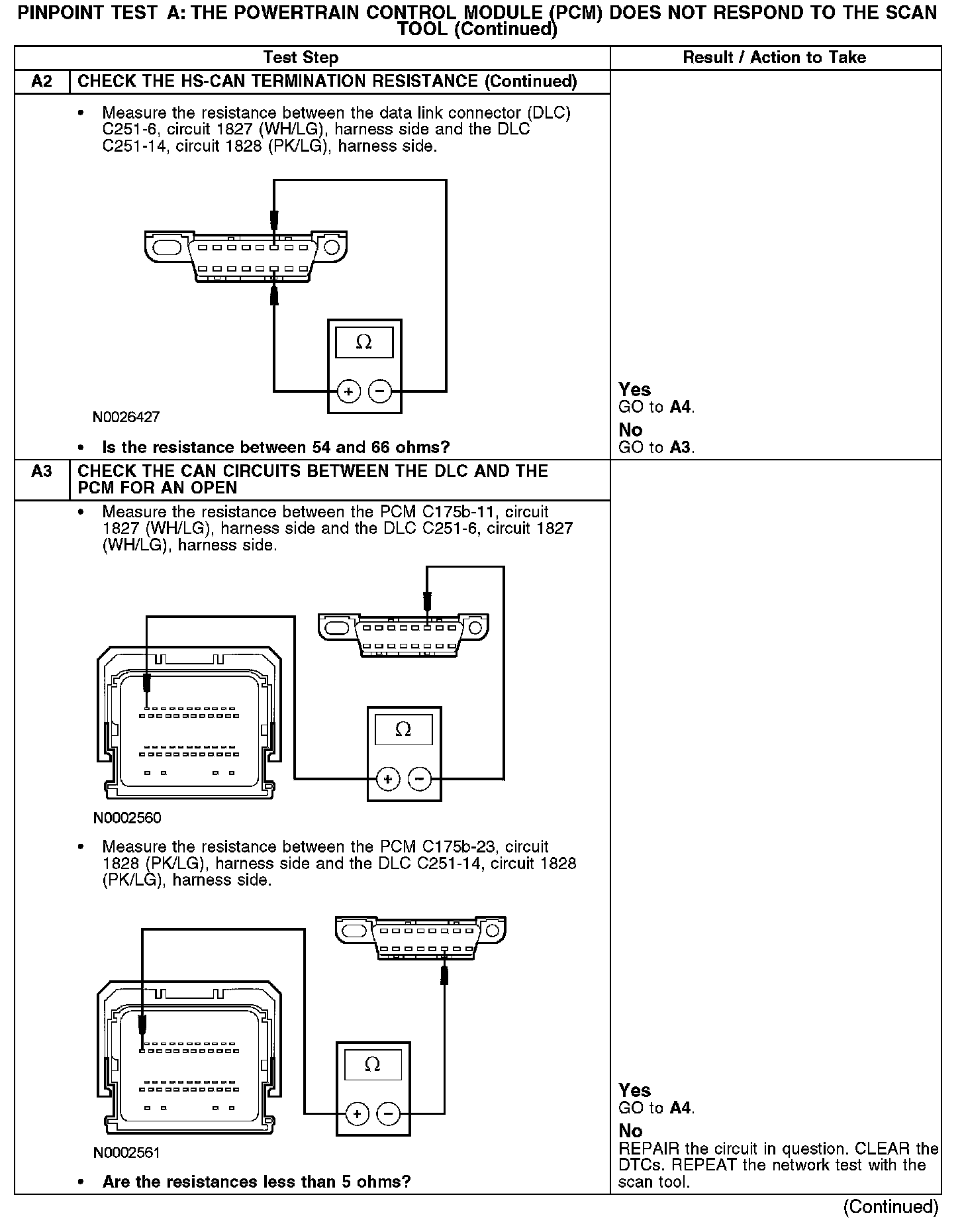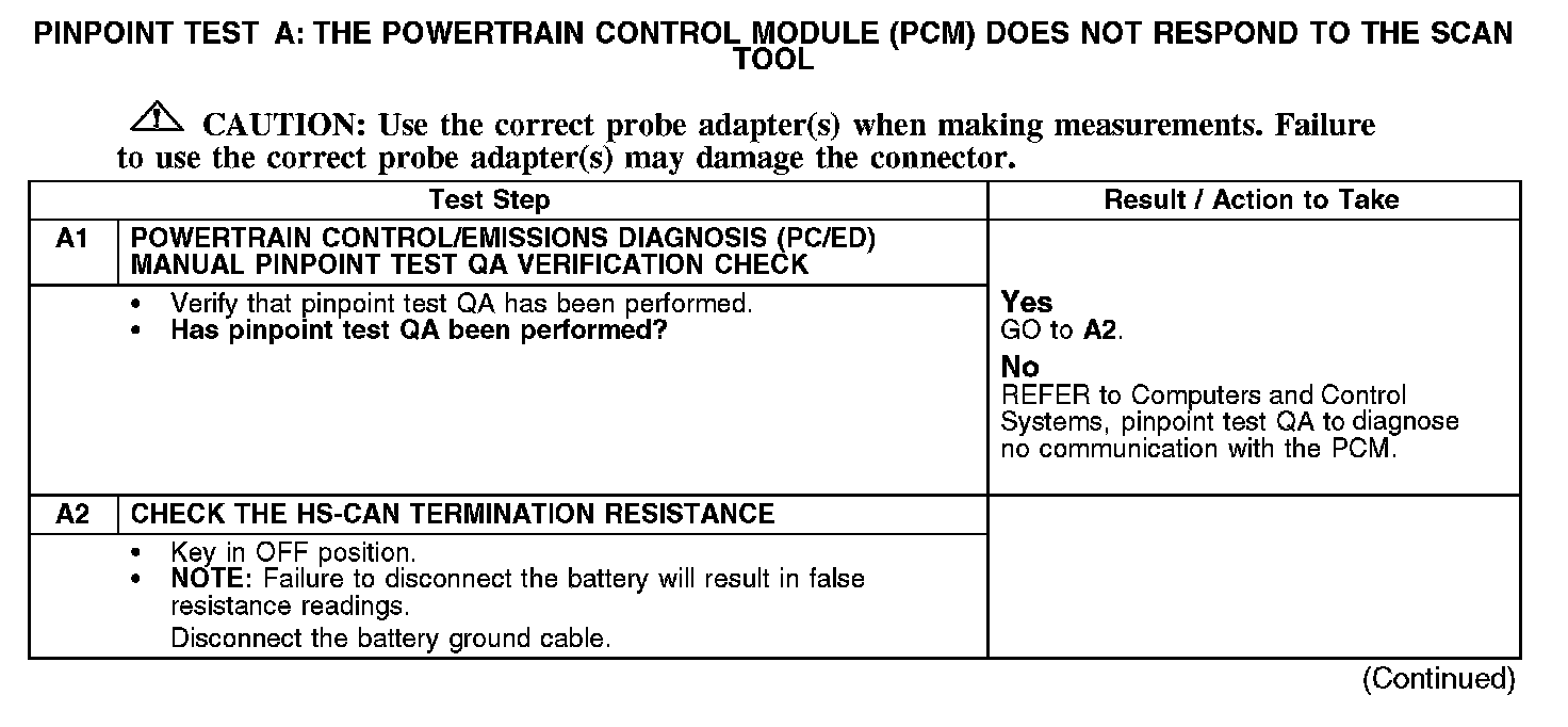 PINPOINT TEST A: THE POWERTRAIN CONTROL MODULE (PCM) DOES NOT RESPOND TO THE SCAN TOOLA1-A2: