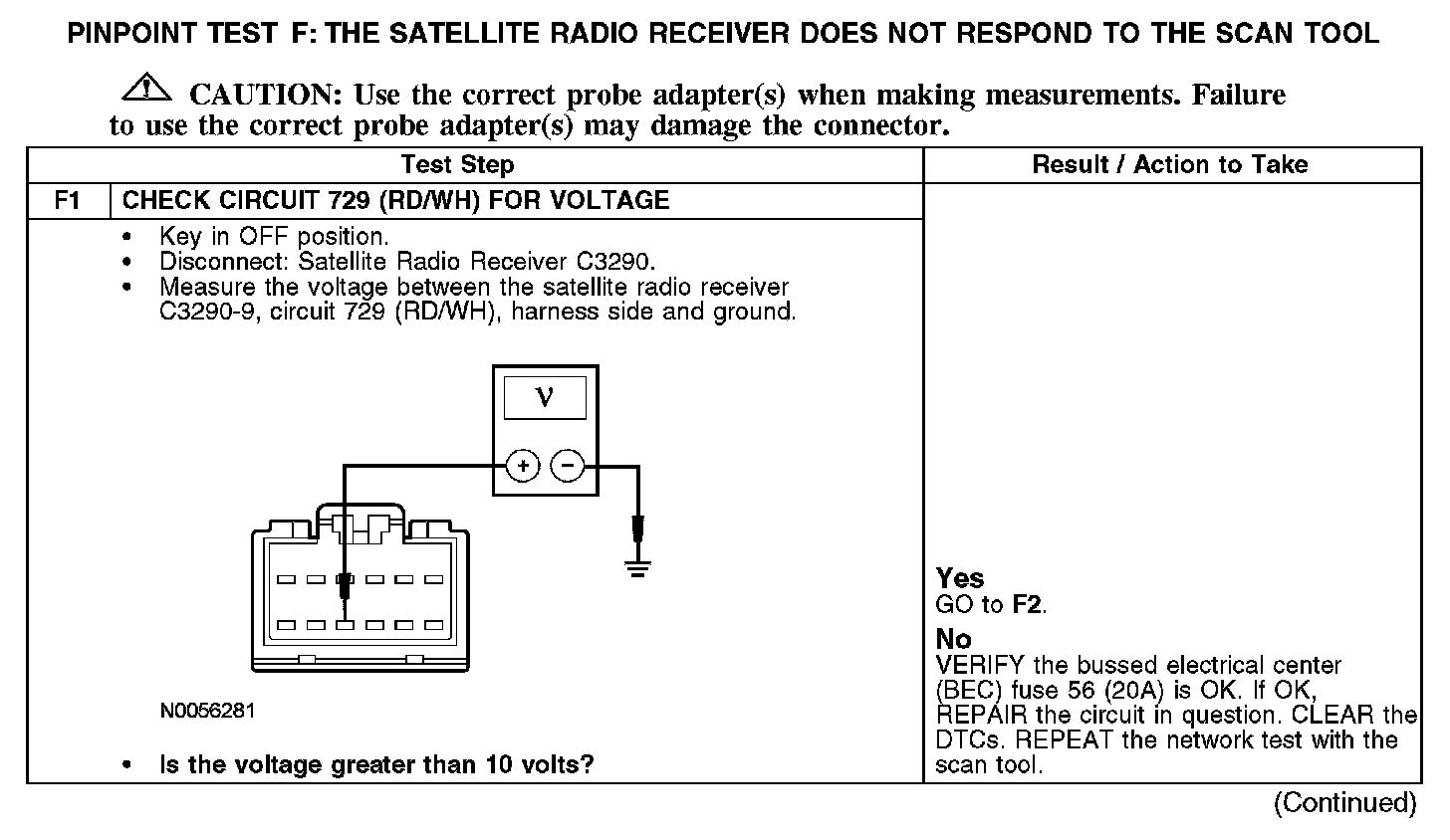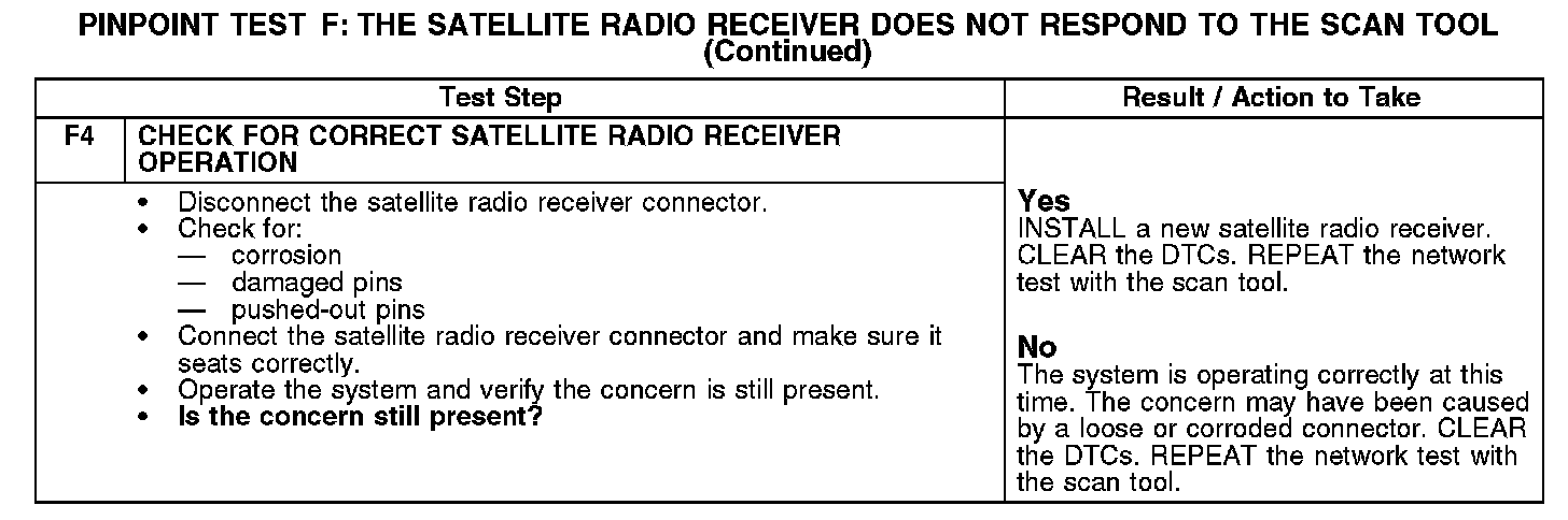 PINPOINT TEST F: THE SATELLITE RADIO RECEIVER DOES NOT RESPOND TO THE SCAN TOOLF1: