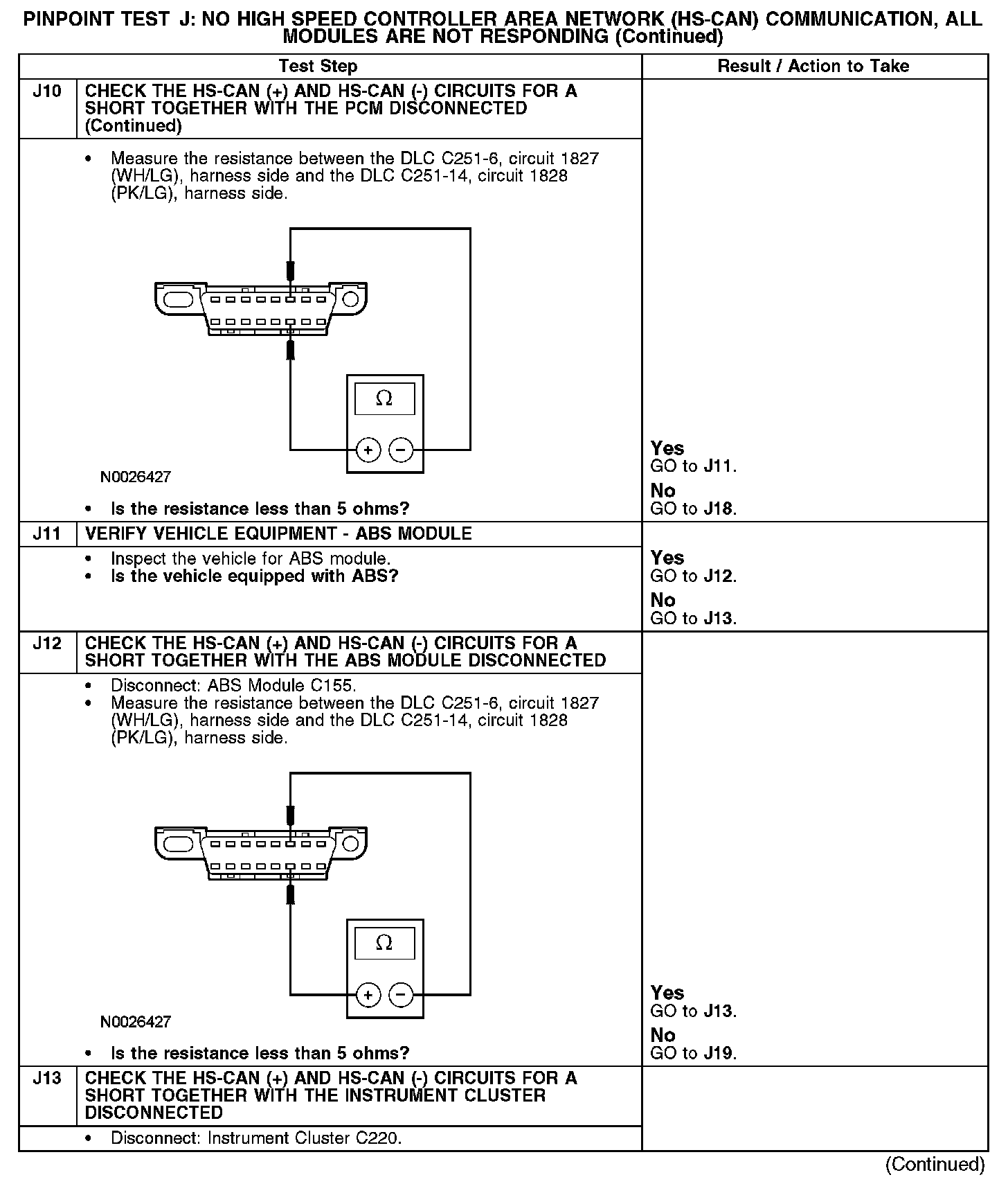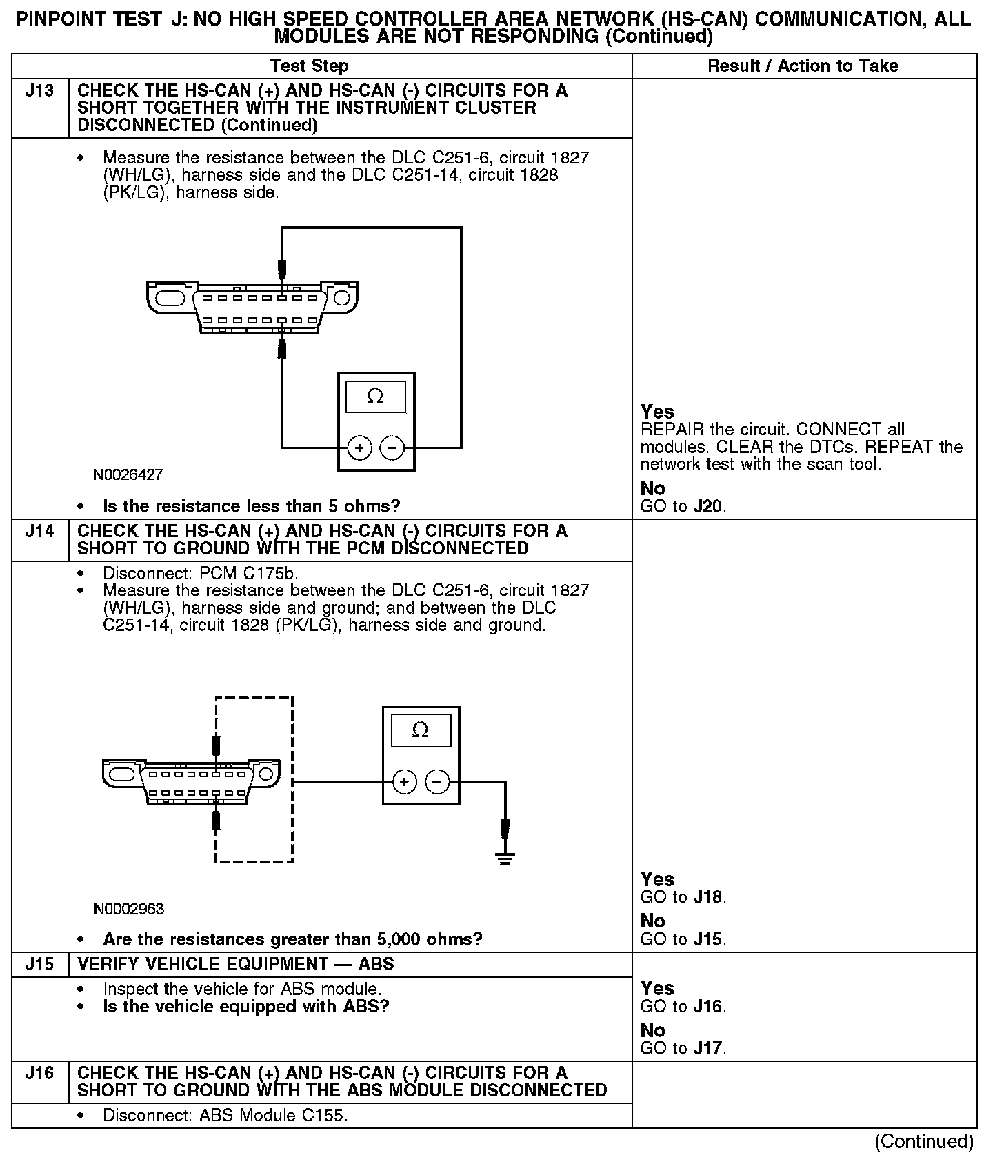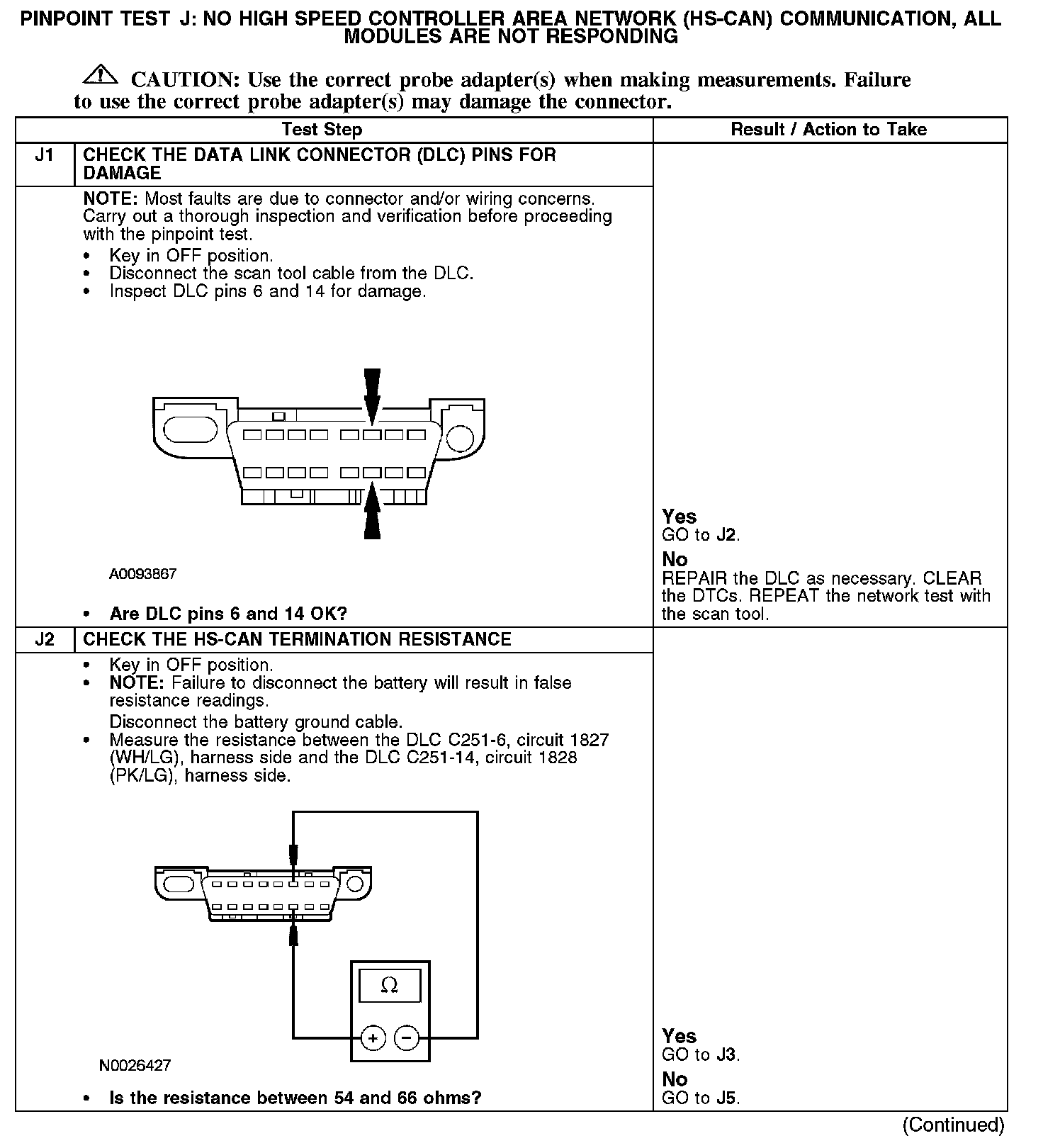 PINPOINT TEST J: NO HIGH SPEED CONTROLLER AREA NETWORK (HS-CAN) COMMUNICATION, ALL MODULES ARE NOT RESPONDINGJ1-J2: