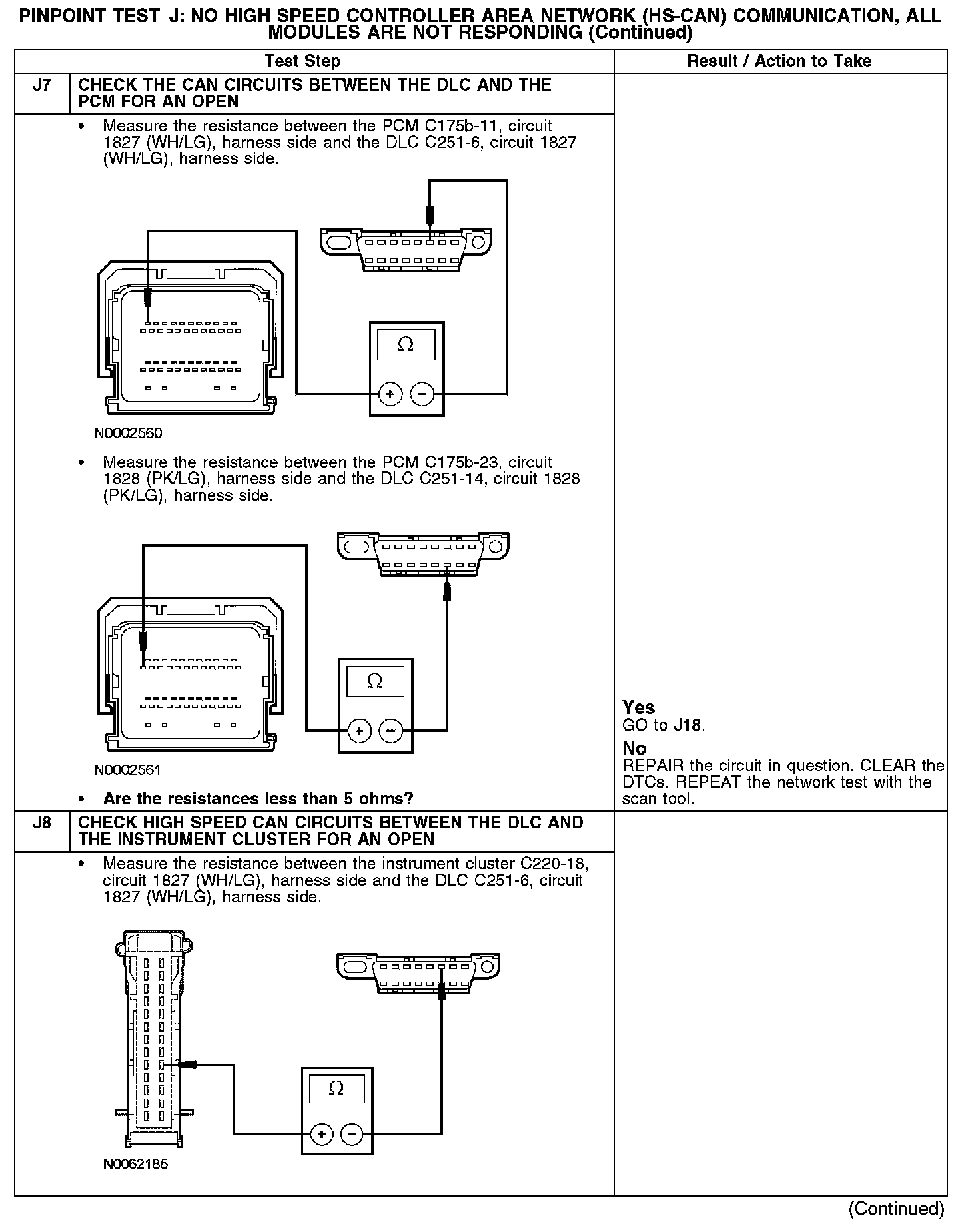 - Circuit 1827 (WH/LG) open, short to ground or voltage (HS-CAN +)