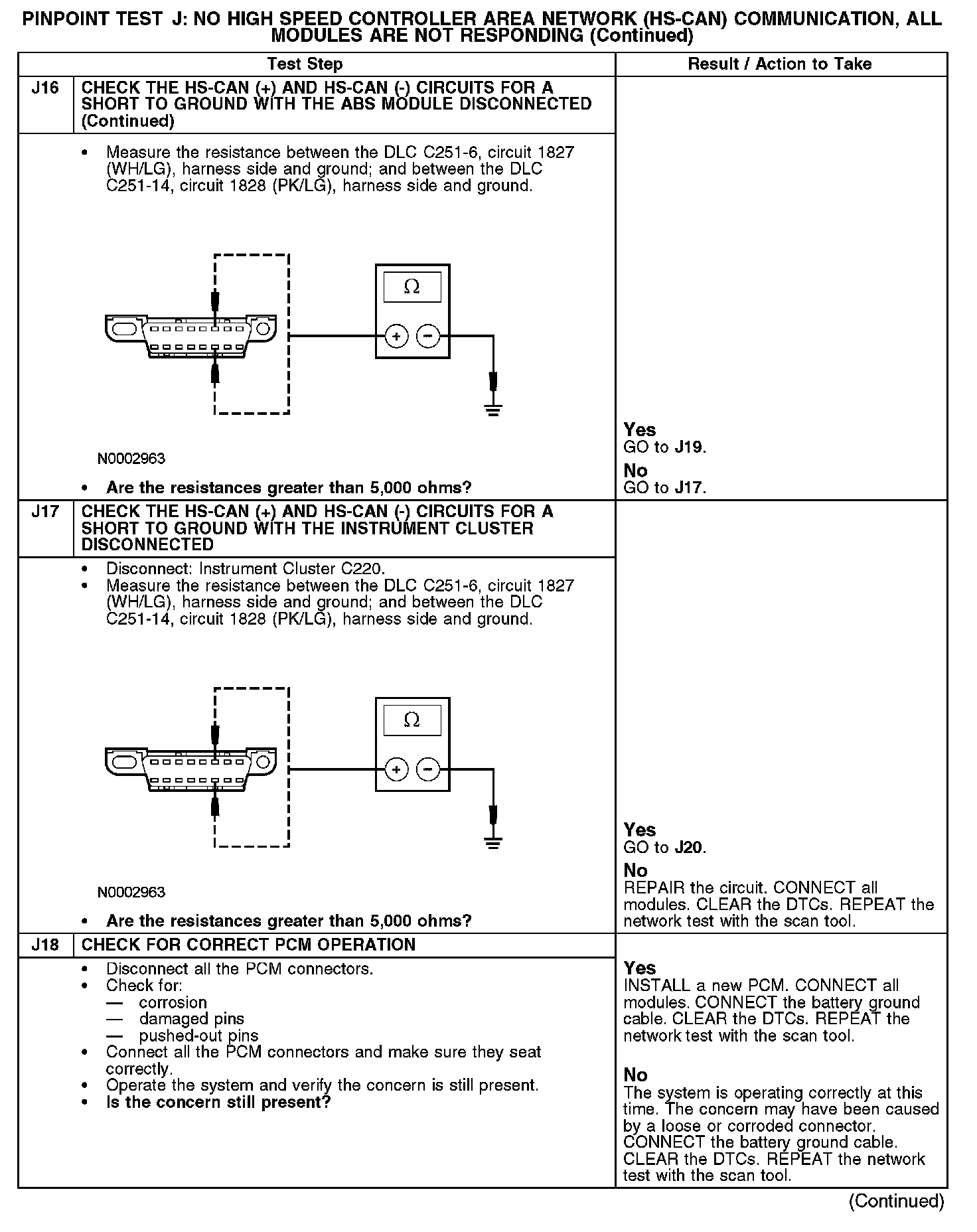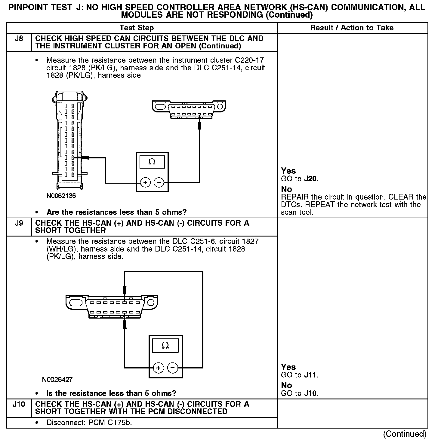 - Circuit 1828 (PK/LG) open, short to ground or voltage (HS-CAN -)