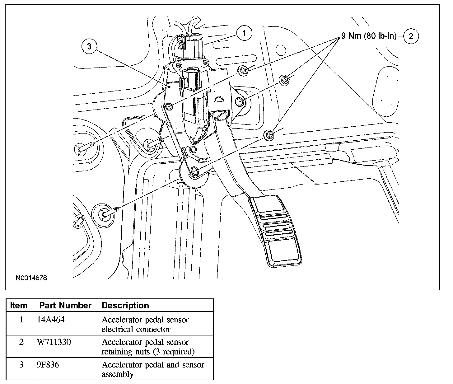 3. Remove the 3 accelerator pedal and sensor retaining nuts.