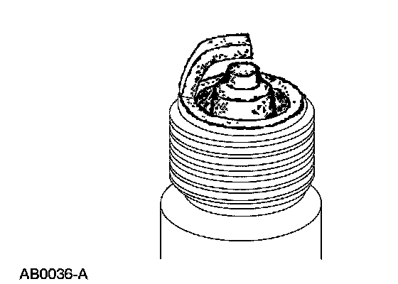 - Check for wet, black deposits on the insulator shell bore electrodes, caused by excessive oil entering the combustion chamber through worn rings and pistons, excessive valve-to-guide clearance or worn or loose bearings.