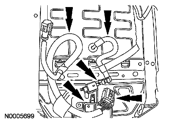 - Feed the hose, pressure sensor, wire harness, electrical connector and the ECU through the seat cushion frame assembly.