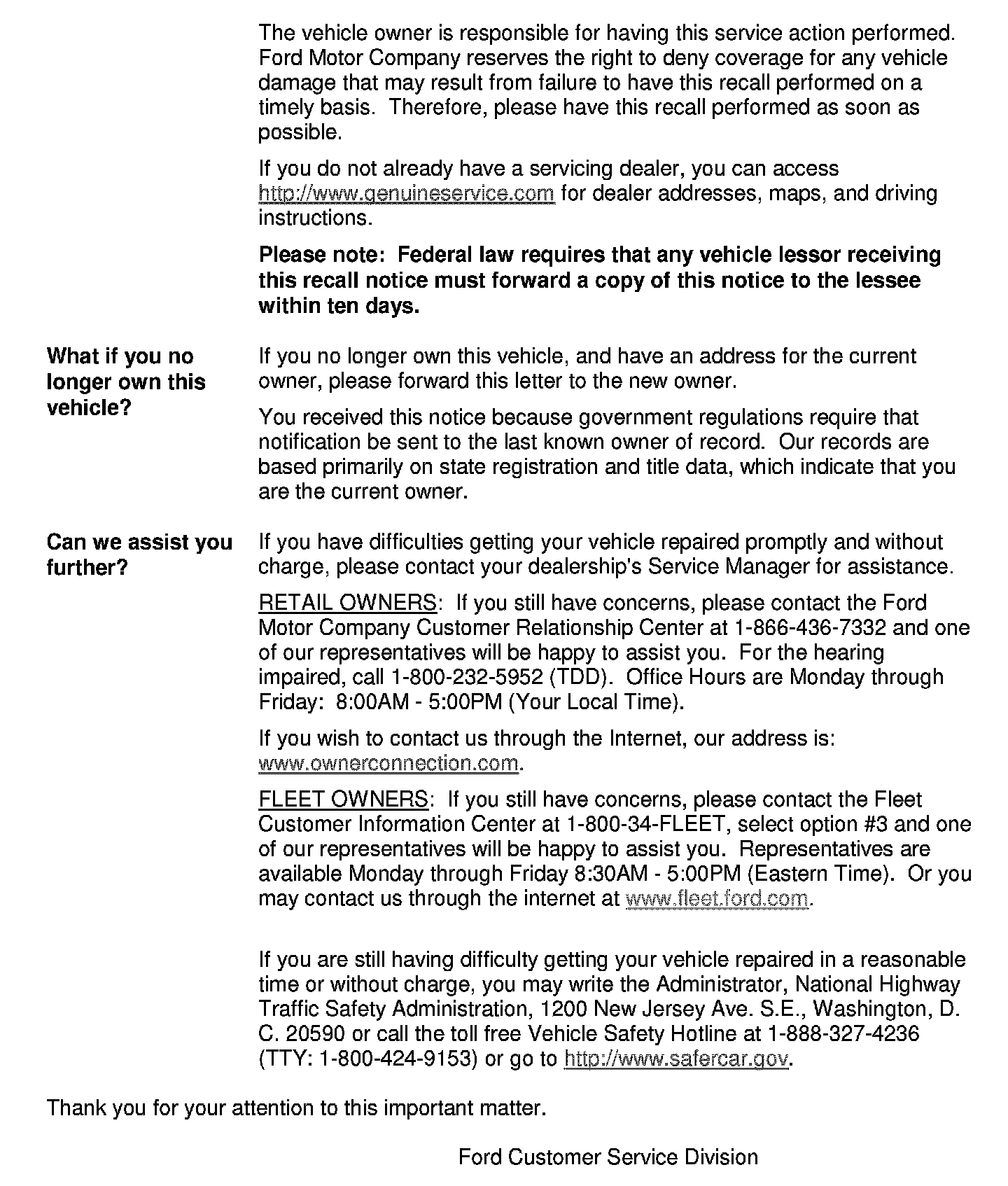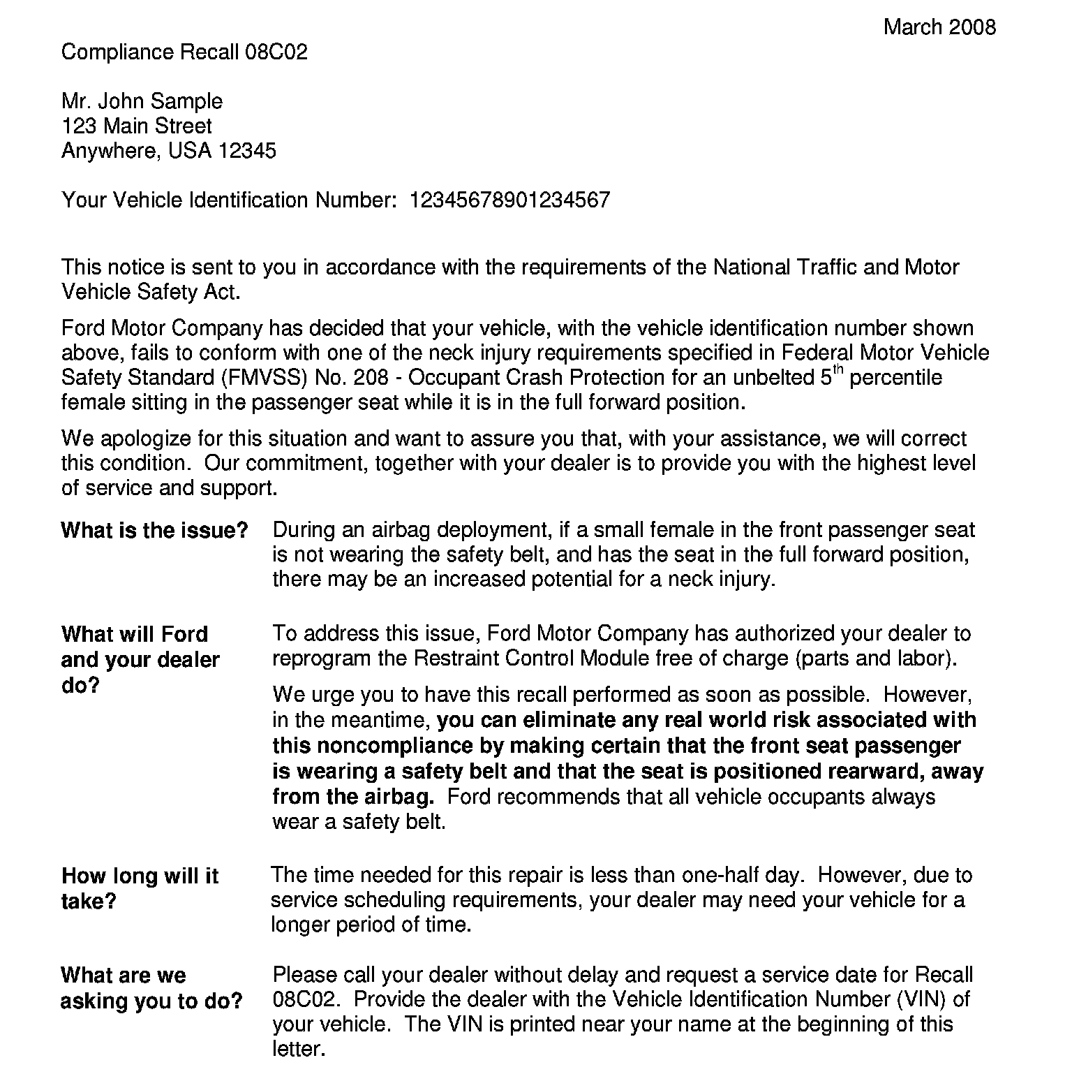 Recall - Occupant Crash Protection Non-Compliance