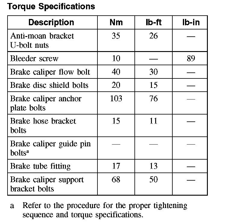 Torque Specifications, Rear: