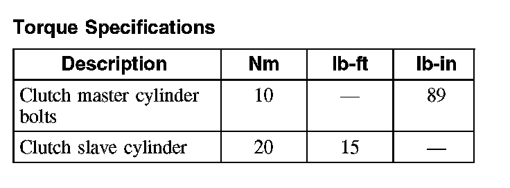 Torque Specifications: