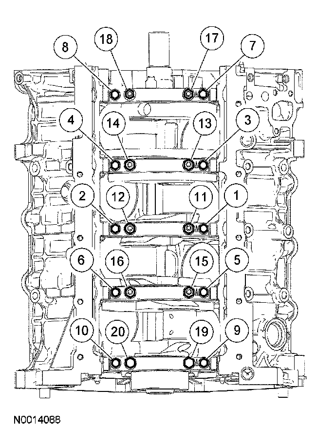 Main bearing cap fastenersStage 1: fasteners 1 through 20 10 Nm (89 inch lbs.)