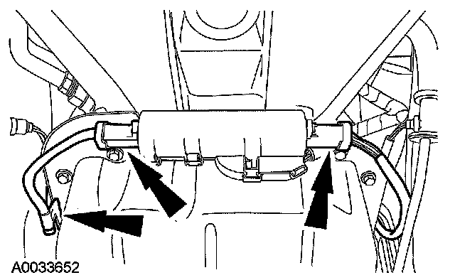 3. Disconnect the heated oxygen sensor (HO2S) connectors and retaining clip from the RH pan rail and then position the connectors aside.