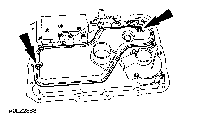 Remove the transmission fluid pan screws, gasket and fluid pan.