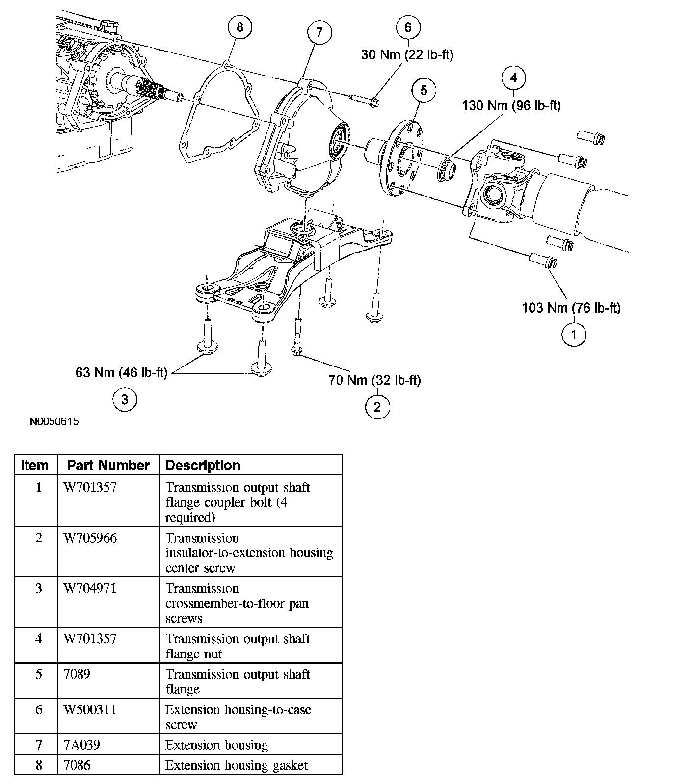 5. Loosely install the transmission insulator-to-extension housing center screw.