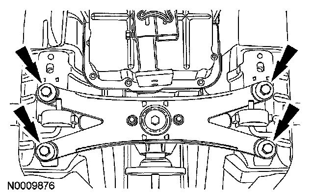 8. With the transmission support insulator neutralized, tighten the transmission crossmember-to-floor pan screws.