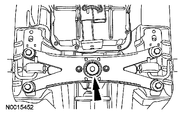 9. With the transmission support insulator neutralized, tighten the transmission insulator-to-extension housing center screw.