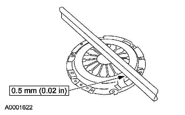 2. Measure the flatness of the clutch pressure plate surface with a straightedge and a feeler gauge.