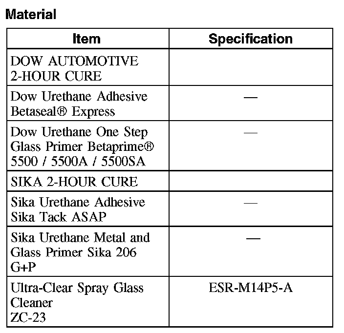 6. CAUTION: Be sure to use the same brand and cure-rate products for the adhesive and primer. Do not mix different brands of urethane and primer. Refer to the Material Chart in this procedure.