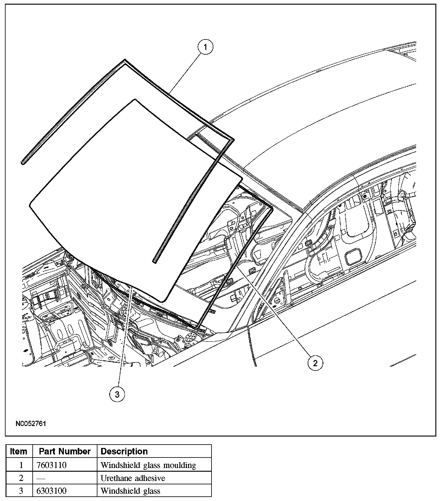 After the urethane has cured, check the windshield glass seal for air or water leaks through the urethane adhesive bead and add urethane adhesive as necessary.