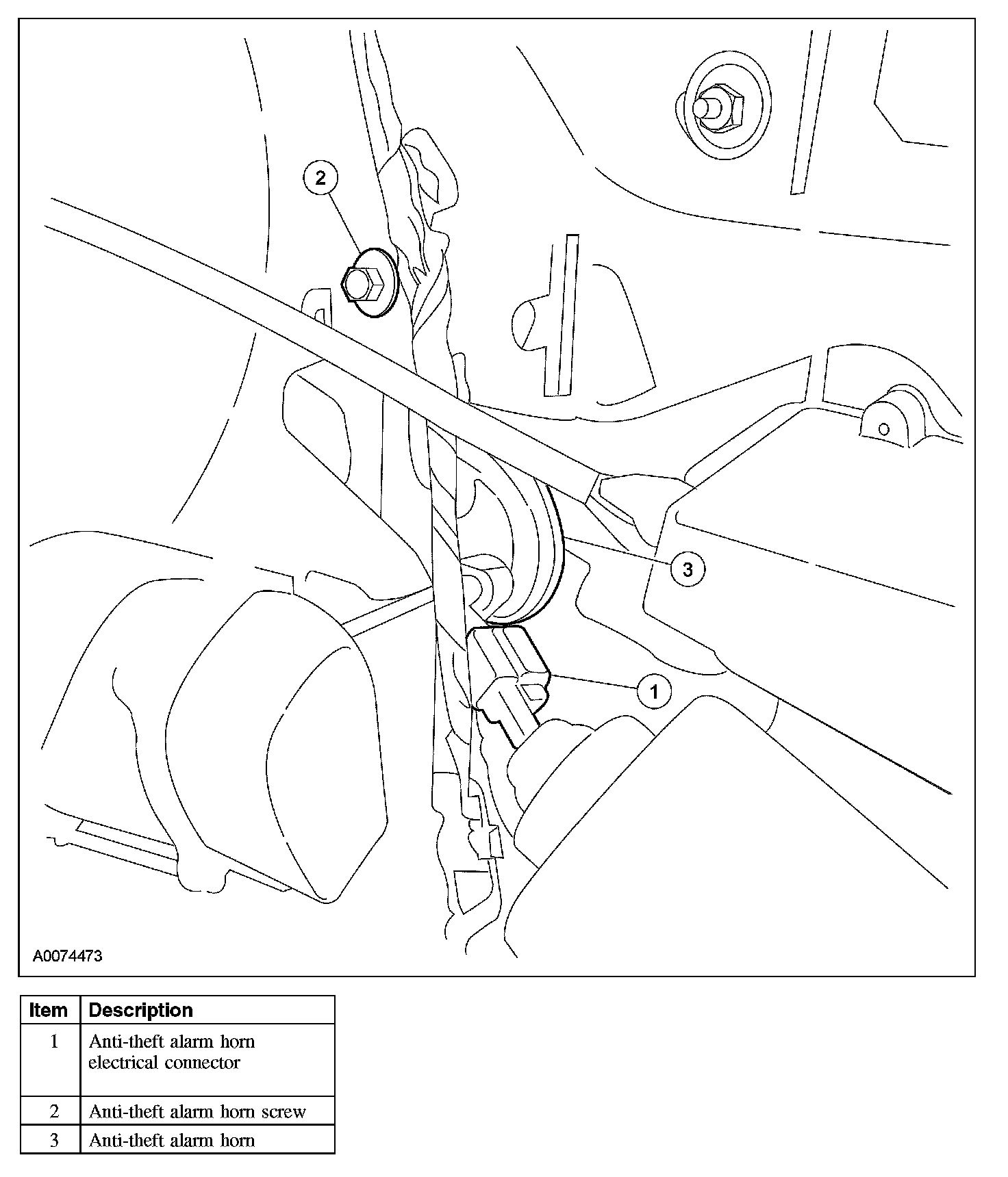 3. Disconnect the anti-theft alarm horn electrical connector.