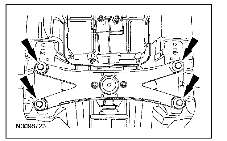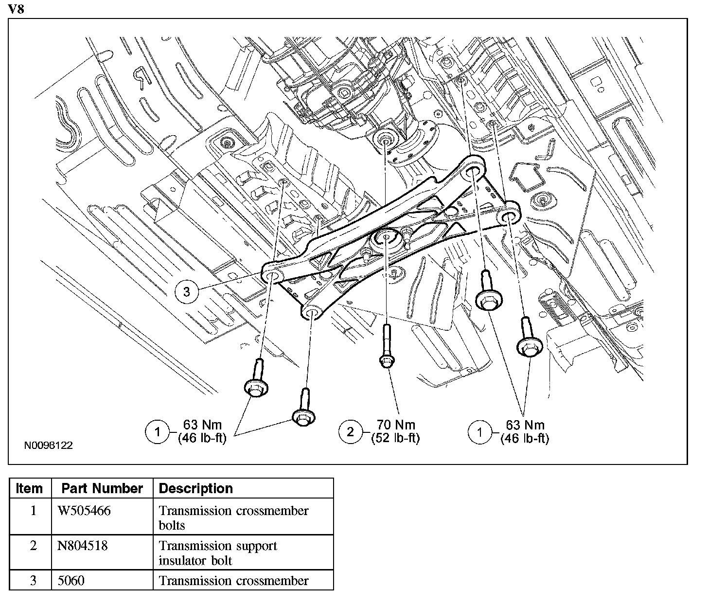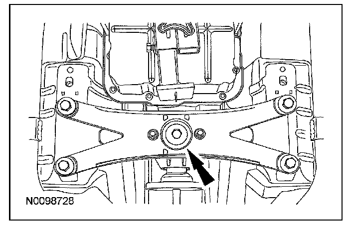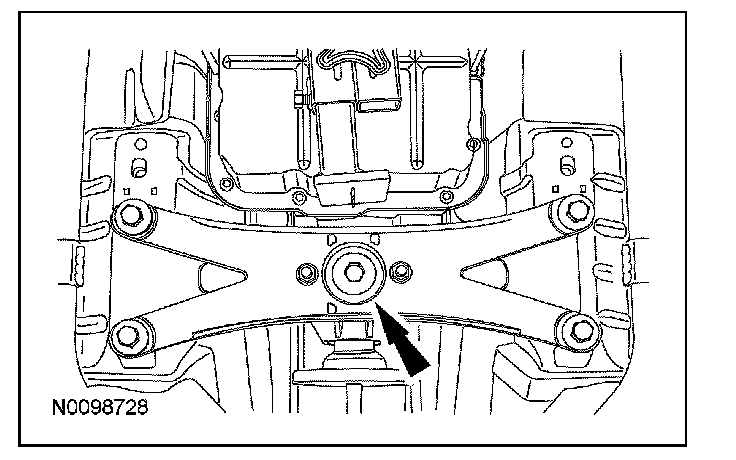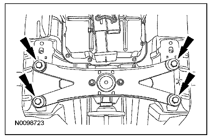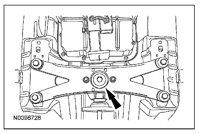 6. With the transmission support insulator neutralized, tighten the transmission crossmember bolts.