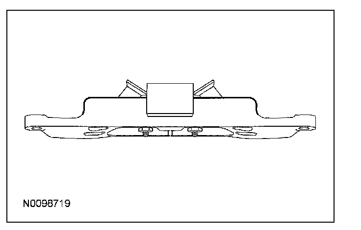 NOTICE: The transmission crossmember must be installed in the same orientation as it was removed. An incorrectly installed crossmember will change the driveline angle and cause a shudder when accelerating from a stop or above average engine presence.