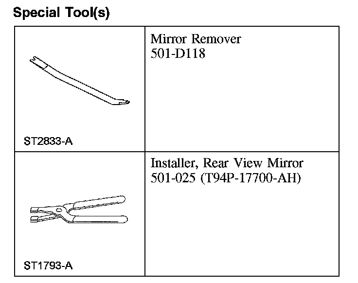 INTERIOR REAR VIEW MIRRORSpecial Tool(s):