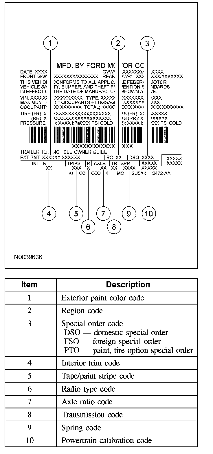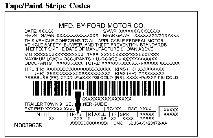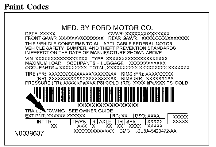 PAINT CODESVehicle Certification Label: