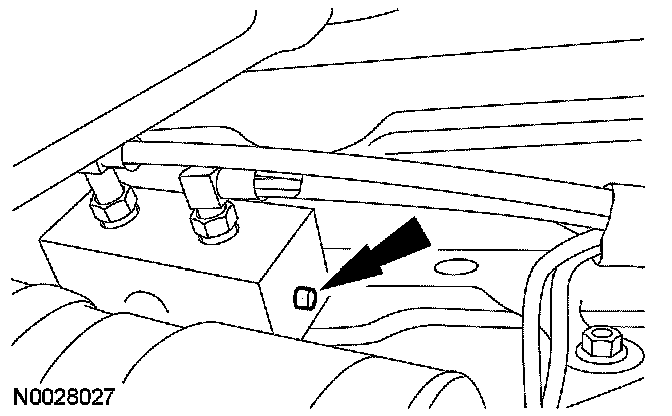 9. Remove the fill plug and check the fluid level. If necessary, add automatic transmission fluid to the bottom of the fill hole.