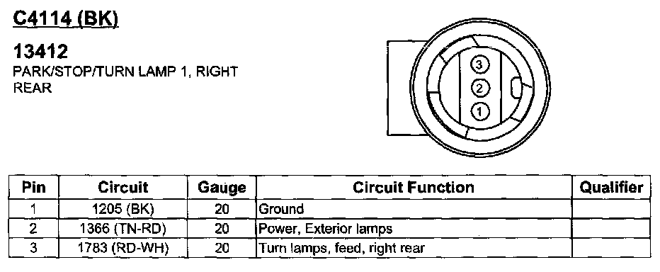 Park/Stop/Turn Lamp 1, Right Rear