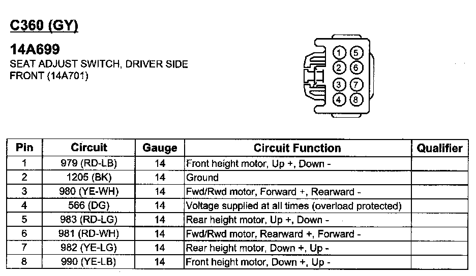Seat Adjust Switch, Driver Side Front
