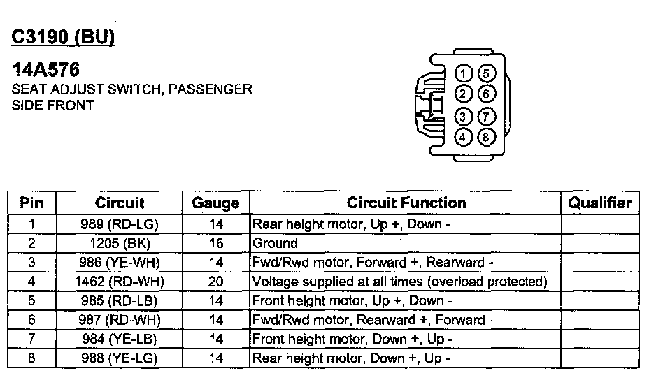 Seat Adjust Switch, Passenger Side Front