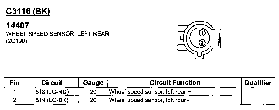 Wheel Speed Sensor, Left Rear