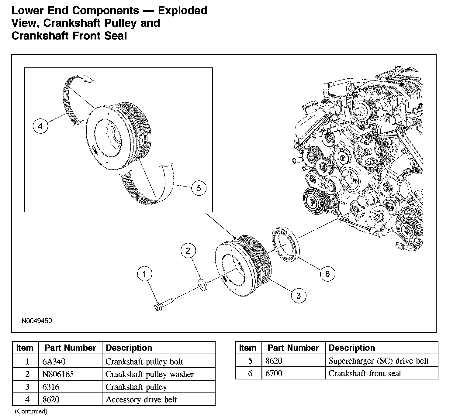 Lower End Components - Exploded View, Crankshaft Pulley and Crankshaft Front Seal: