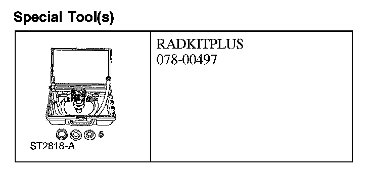 1. Using the special tool, install the RADKITPLUS and follow the RADKITPLUS manufacturer's instructions to fill and bleed the cooling system.
