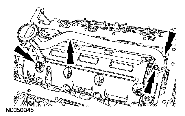 CAUTION: During engine repair procedures, cleanliness is extremely important. Any foreign material, including any material created while cleaning gasket surfaces that enters the oil passages, coolant passages or the oil pan, can cause engine failure.