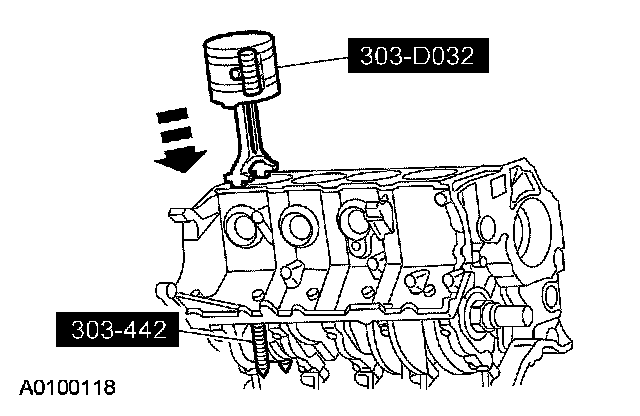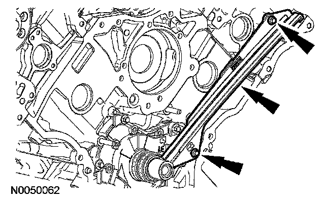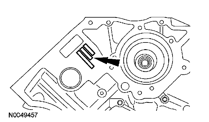 CAUTION: During engine repair procedures, cleanliness is extremely important. Any foreign material, including any material created while cleaning gasket surfaces, that enters the oil passages, coolant passages or the oil pan, can cause engine failure.