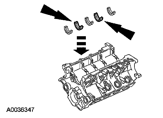 Lubricate the upper crankshaft main bearings with clean engine oil and install into the cylinder block.