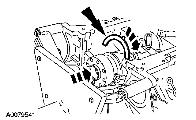 11. Push the crankshaft forward to seat the crankshaft thrust washer. Hold the crankshaft in the forward position.