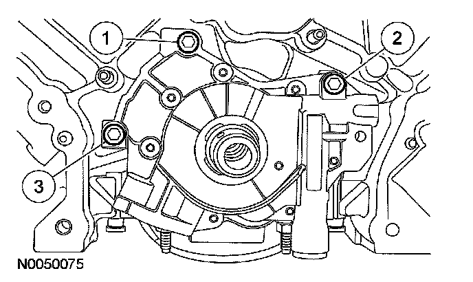 Install the oil pump screen and pickup tube and the 3 bolts.