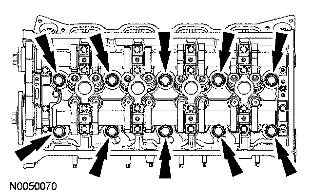 27. Tighten the new LH cylinder head bolts in 5 stages in the sequence shown.