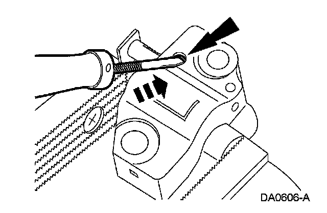 31. Install a suitable pin into the hole of each tensioner housing to hold the ratchet assembly and plunger in place during installation.