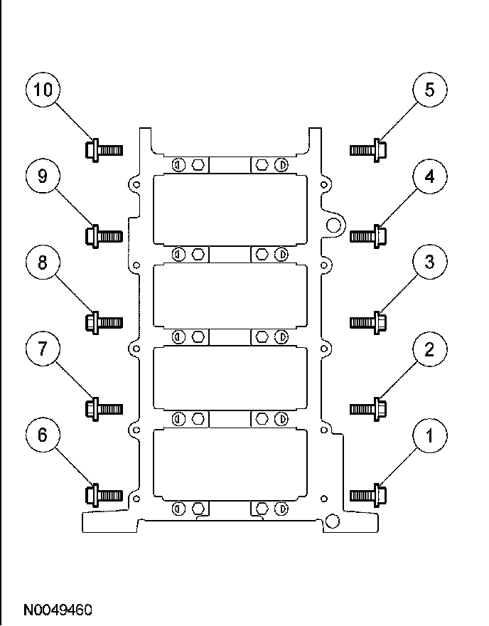 - Tighten the bolts in the sequence shown to 10 Nm (89 inch lbs.).