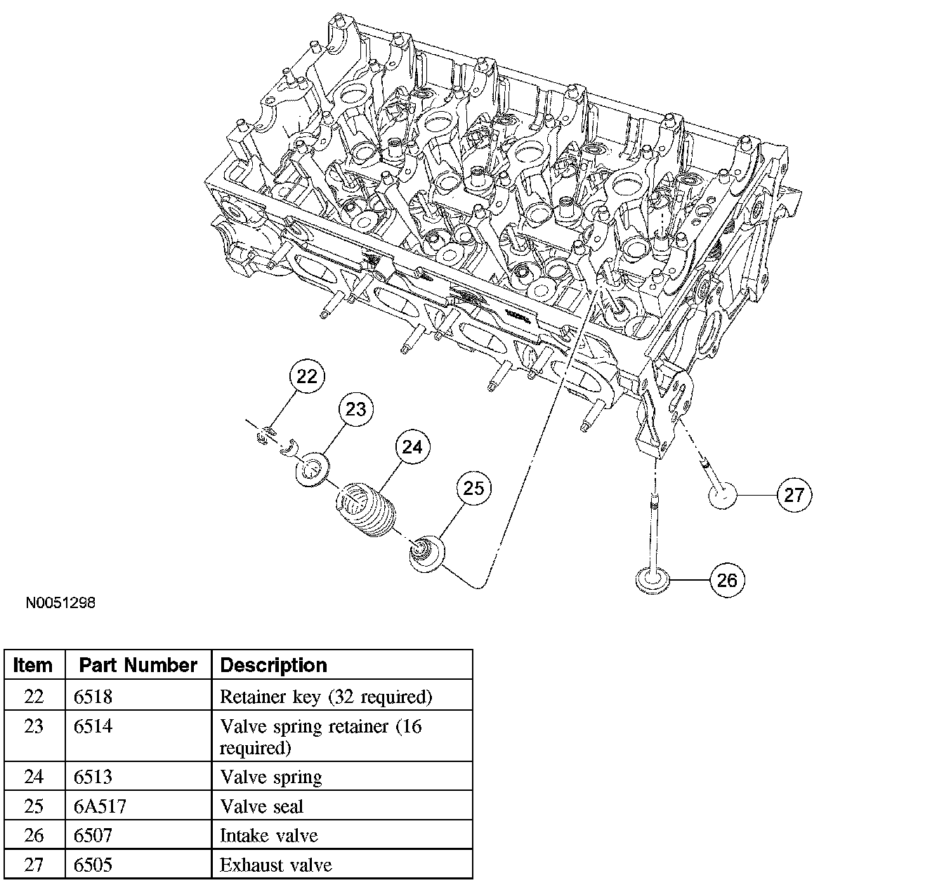 4. Position the valve, the valve spring and the spring retainer into the cylinder head.