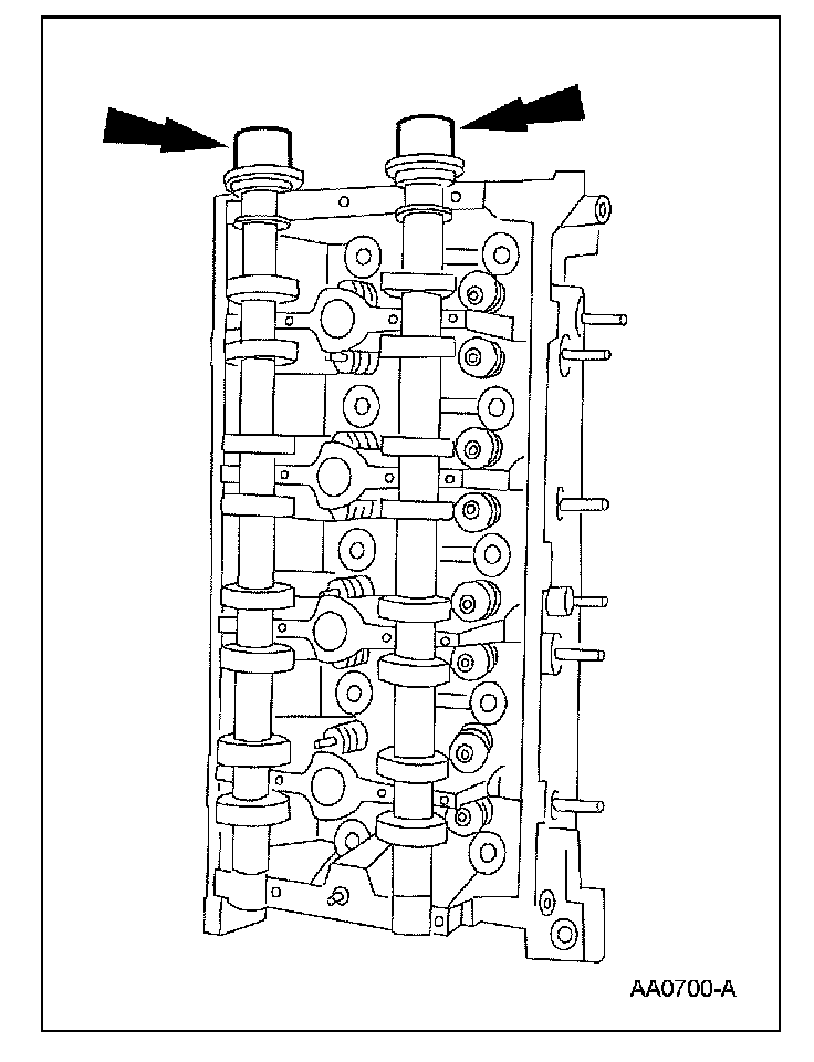 - Remove the camshaft bearing caps.