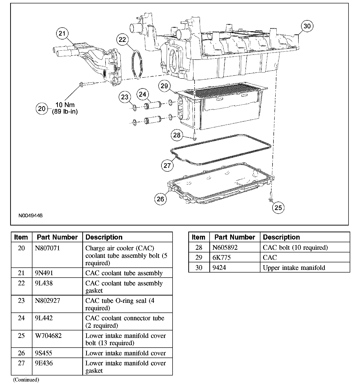 - Tighten in the sequence shown to 10 Nm (89 inch lbs.).
