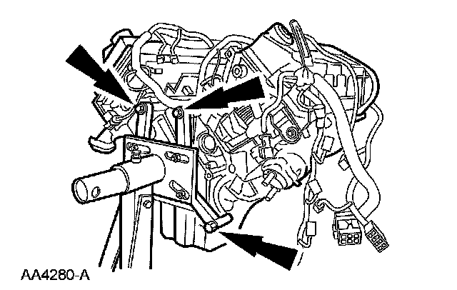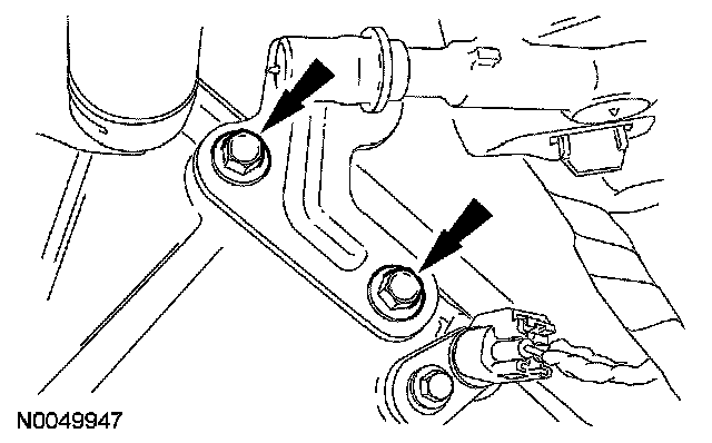 40. Remove the 2 bolts and the wiring harness retaining bracket.
