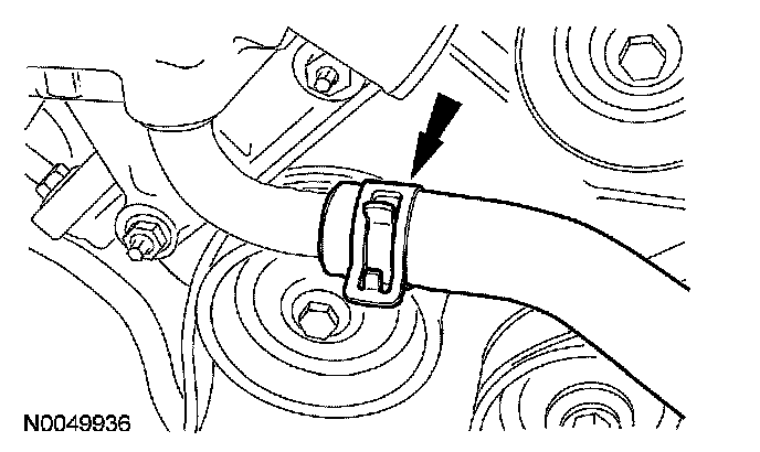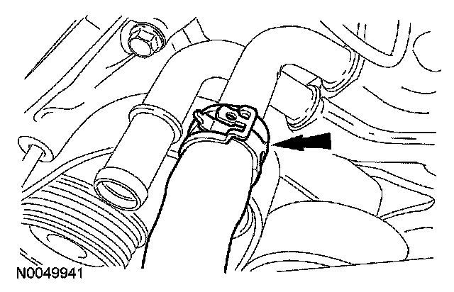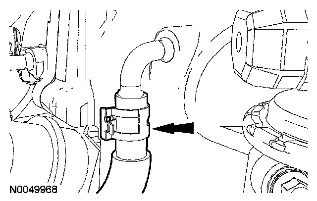 7. Disconnect the coolant hose from the thermostat housing.