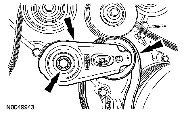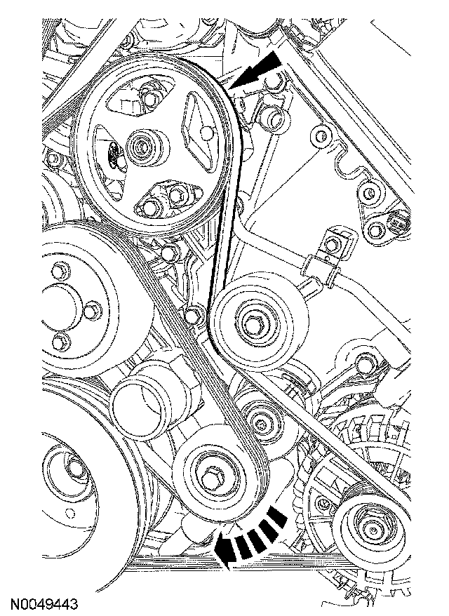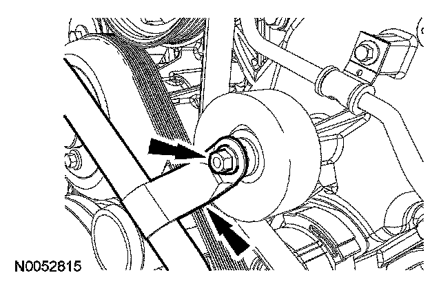 15. Rotate the accessory drive belt tensioner clockwise and remove the accessory drive belt.