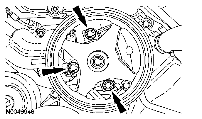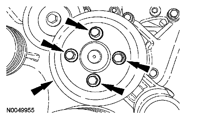 14. Loosen the 4 coolant pump pulley bolts.