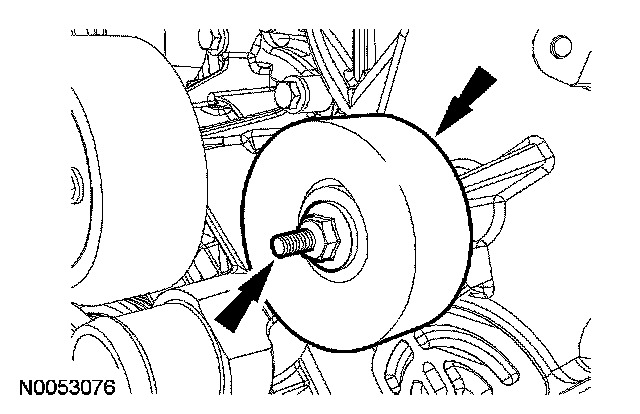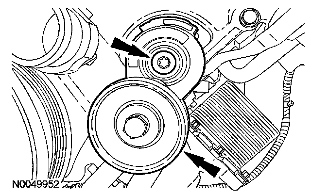 25. Remove the bolt and the accessory drive belt tensioner.