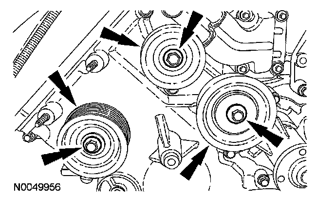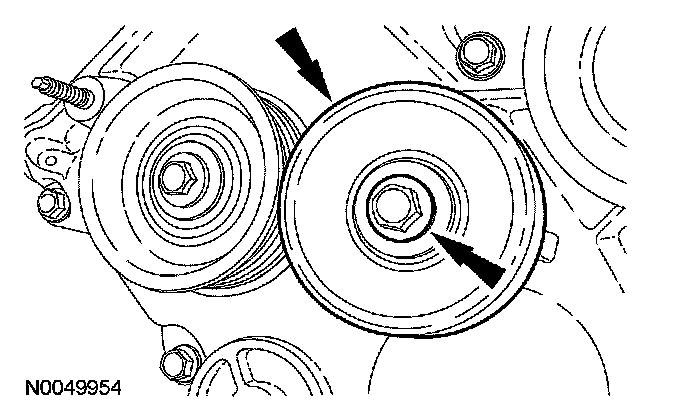 27. Remove the bolt and the accessory drive belt idler pulley (grooved).